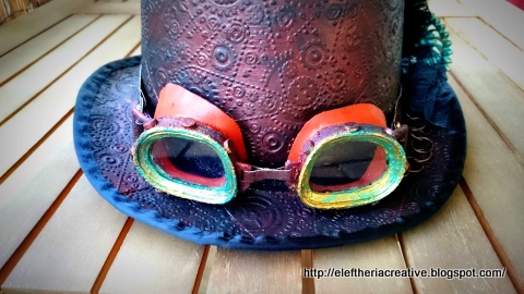 Φυσικά steampunk καπέλο χωρίς Goggles δεν γίνεται. Τα γυαλιά τα πέρασα με πάστα άμμου και τα έβαψα στο χρώμα τις σκουριάς.